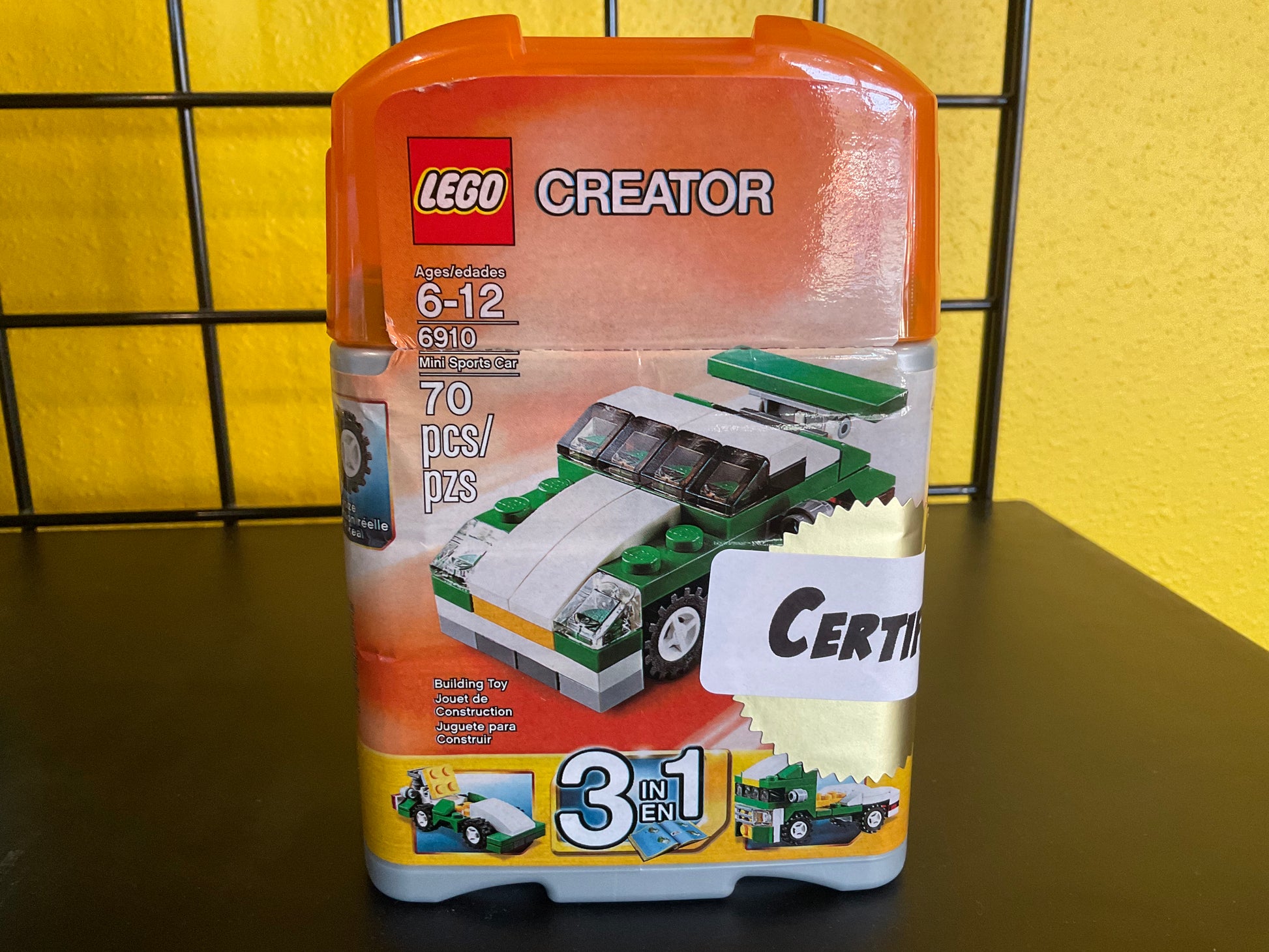LEGO 6910 Mini Sports Car was a 70 piece Creator set released in 2012. It is a miniature version of 6743 Street Speeder and can rebuilt into a go-kart or a flatbed truck.