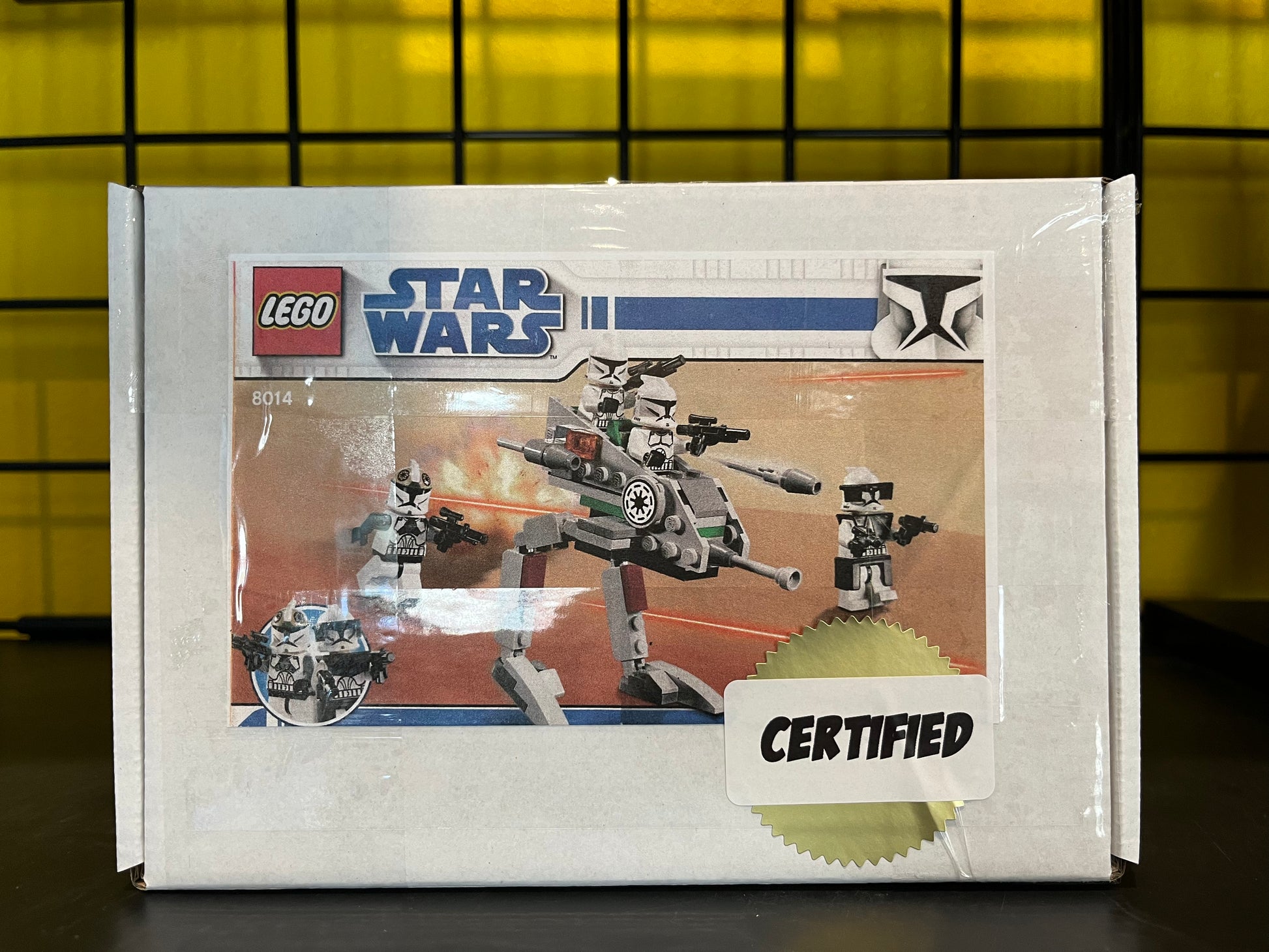 LEGO 8014 Clone Walker Battle Pack was a 72 piece Star Wars set with 4 minifigs released in 2009. It is a Battle Pack that contains four minifigures, including two Clone Troopers, a Clone Gunner and a Clone Commander.