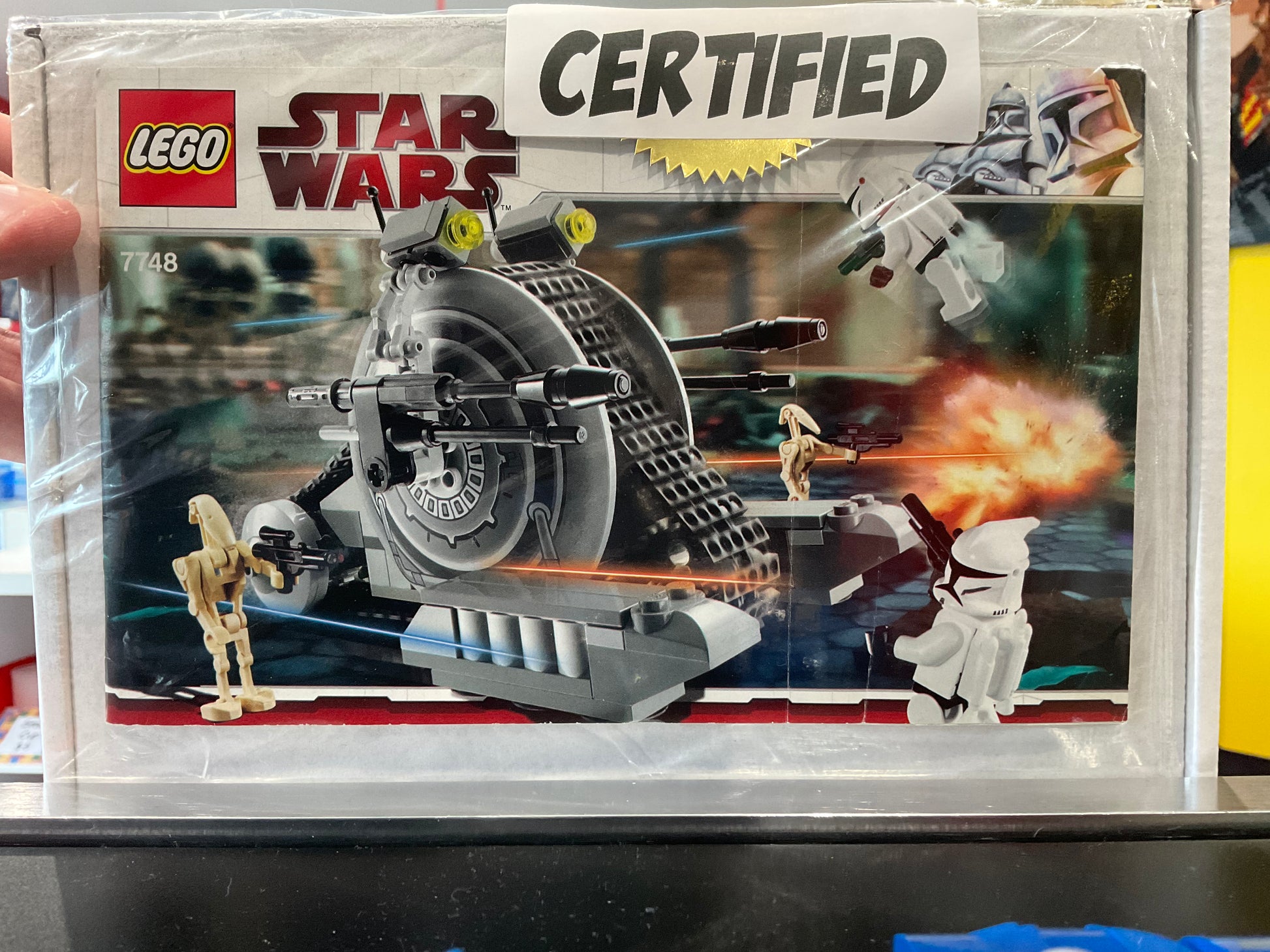 LEGO 7748 Corporate Alliance Tank Droid was a 216 piece Star Wars set with 4 minifigs released in 2009. It is based on Star Wars: The Clone Wars and is the second version of the Corporate Alliance Tank Droid. It includes four minifigures: two Clone jetpack troopers and two Battle Droids.