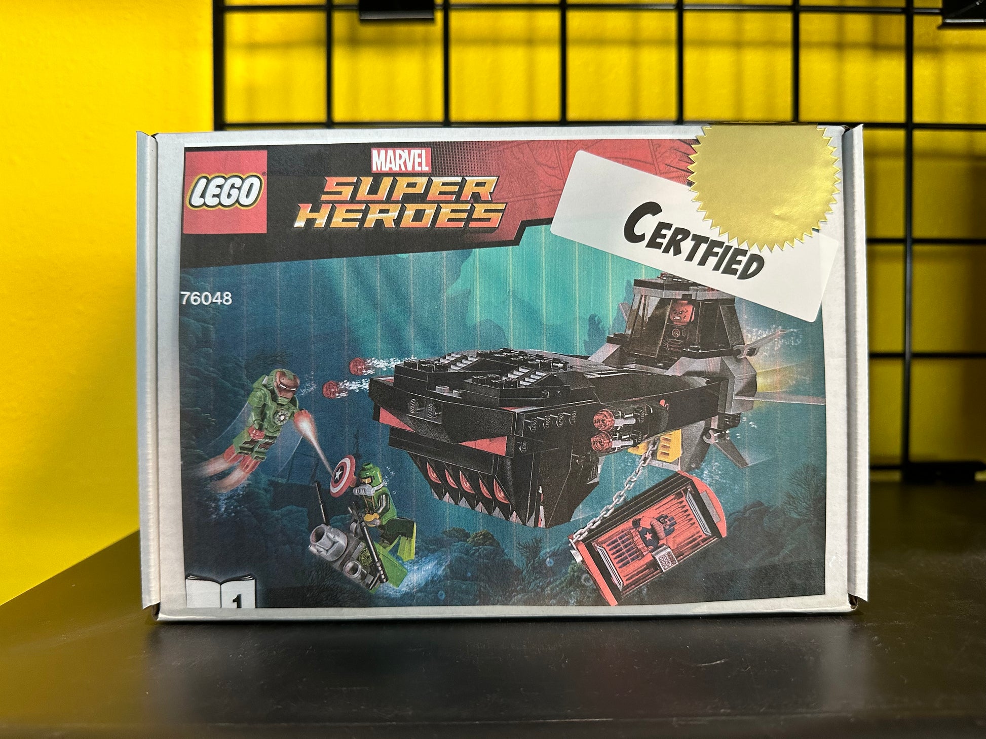 LEGO 76048 Iron Skull Sub Attack was a 335 piece Marvel Super Heroes set with 4 minifigs released in 2016. It was retired in February 2017 with a lifespan of 13 months.