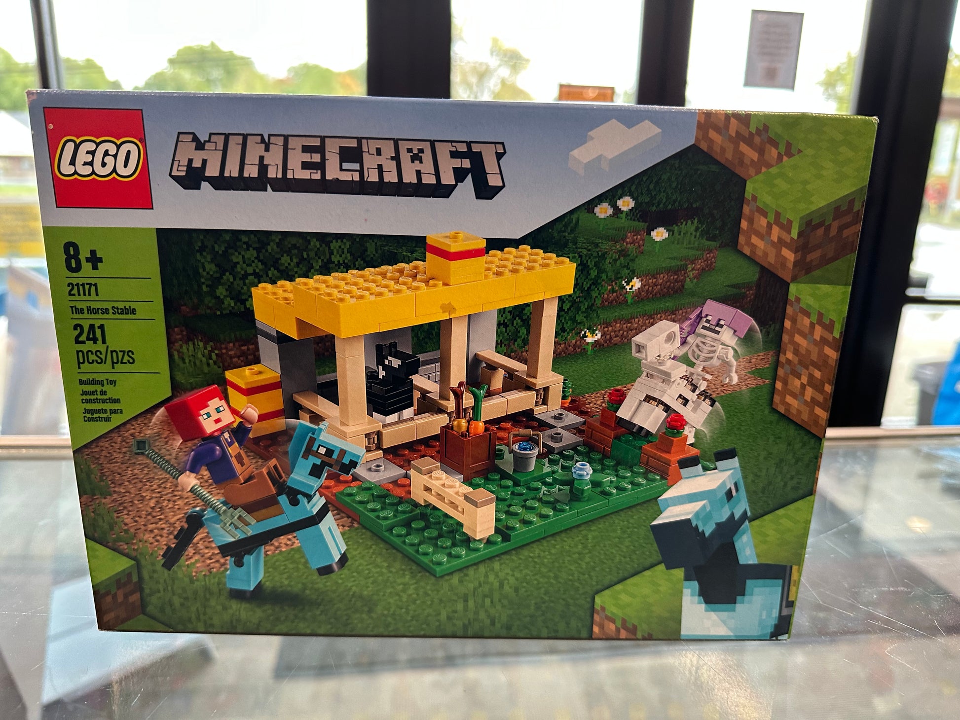 LEGO 21171 The Horse Stable is a 241 piece Minecraft set with 2 minifigs released in 2021. It features a stable with opening doors, Minecraft details like a golden carrot and diamond armor, and includes horses. It was retired in December 2022 with a lifespan of 18 months.