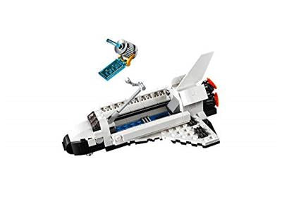 LEGO 31091 Shuttle Transporter is a 341 piece Creator set released in 2019. It features a flatbed truck with vertical exhaust stacks, a trailer, a space shuttle with large engines and opening payload bay doors, a working crane, and a satellite. The set rebuilds into a Helicopter Transporter or Car with Caravan.