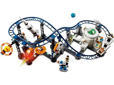 LEGO 31142 Space Roller Coaster is a 874 piece Creator set with 6 minifigs released in 2023. It consists of a 3in1 amusement park playset featuring a space-themed roller coaster, drop tower, and carousel, along with 5 minifigures and various space-themed elements. It was retired in November of 2025.