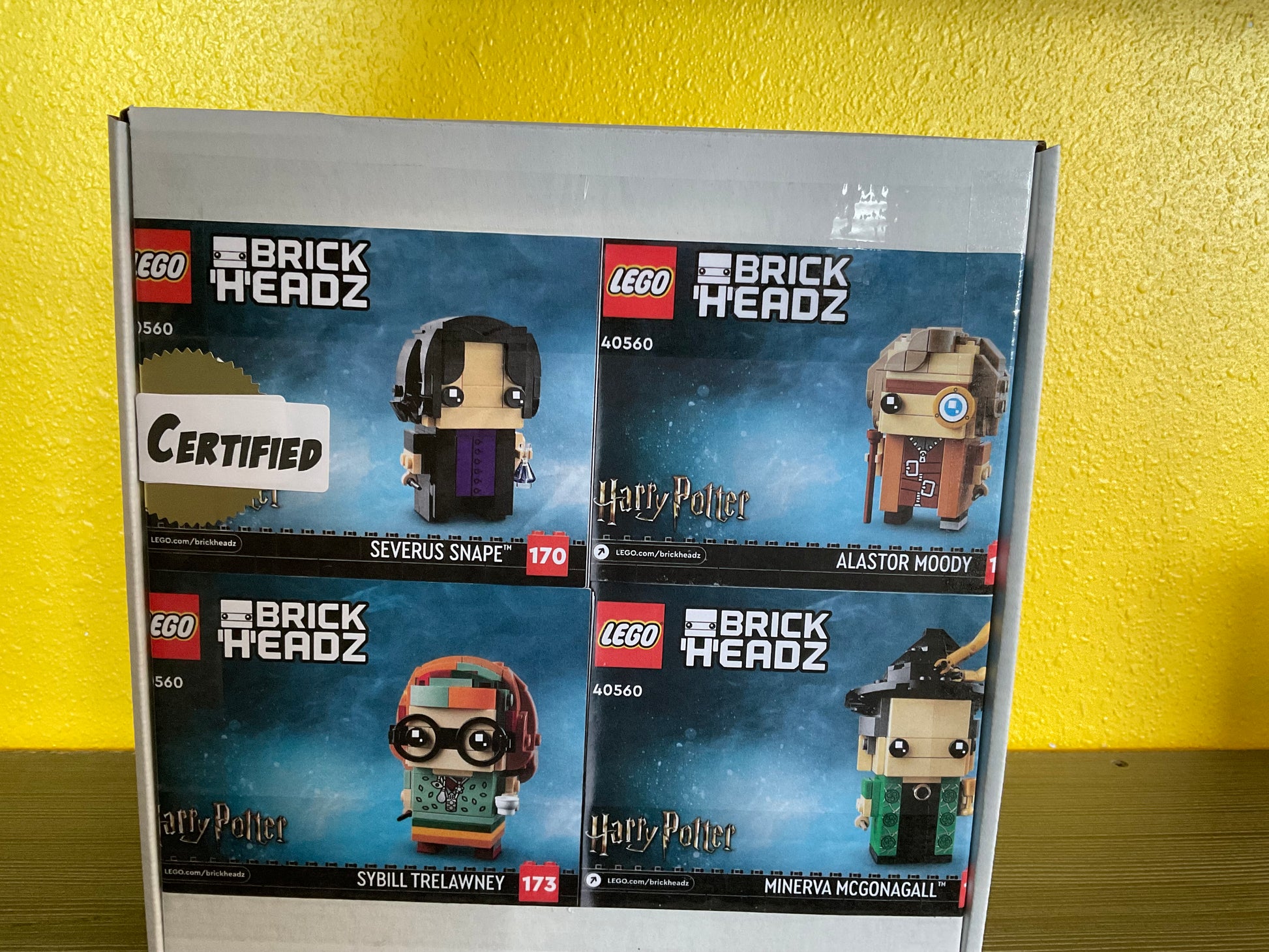 LEGO 40560 Professors of Hogwarts is a BrickHeadz Wizarding World set released in 2022, containing 601 pieces. It builds four BrickHeadz characters—Professors Severus Snape, Minerva McGonagall, Alastor Moody, and Sybill Trelawney—corresponding to BrickHeadz Nos. 170–173. The models feature printed elements and character-specific details, along with individual display baseplates. This 4-pack focuses on Hogwarts staff from the Harry Potter films.