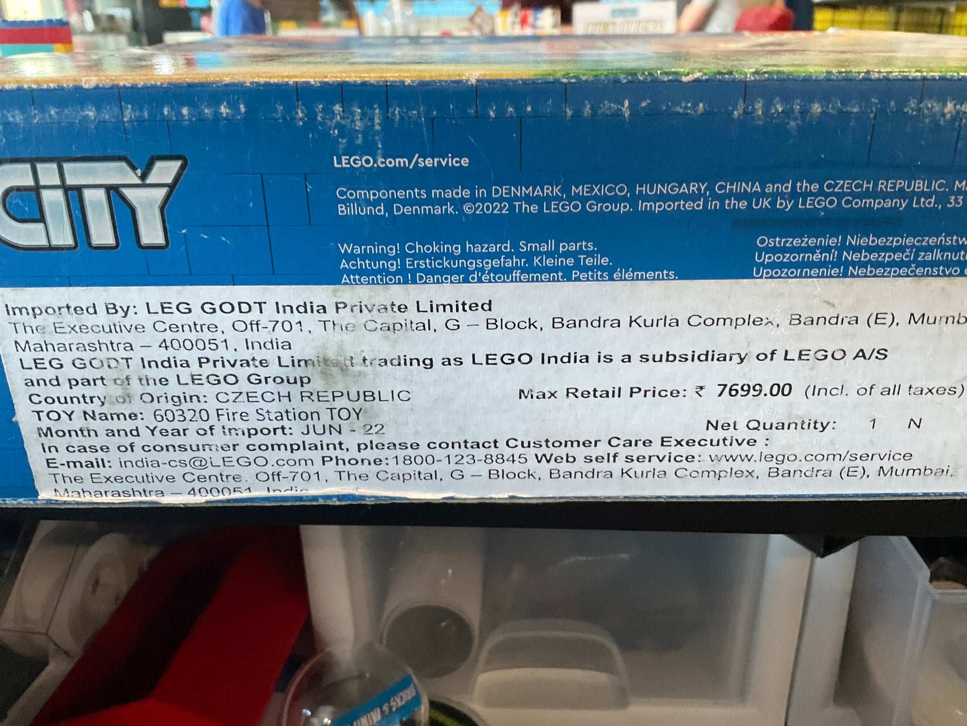 this particular set was originally purchased in India. The box does not contain the piece count or other information required of sets released in the United States.