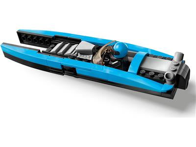 LEGO 60395 Combo Race Pack is a 362 piece City set with 3 minifigs released in 2023. It includes a red sports car, yellow SUV and blue speedboat as featured in the LEGO 2KDRIVE video game, plus 3 driver minifigures. It was retired in December 2024.