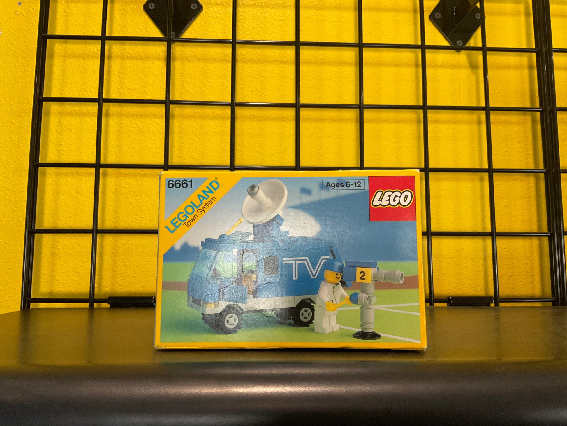 LEGO 6661 Mobile TV Studio was a 78 piece Town set with 1 minifig released in 1989. It features a blue van with a roof-mounted satellite dish, a TV camera, unique TV-logo panels, and one minifigure who doubles as the driver and cameraman.