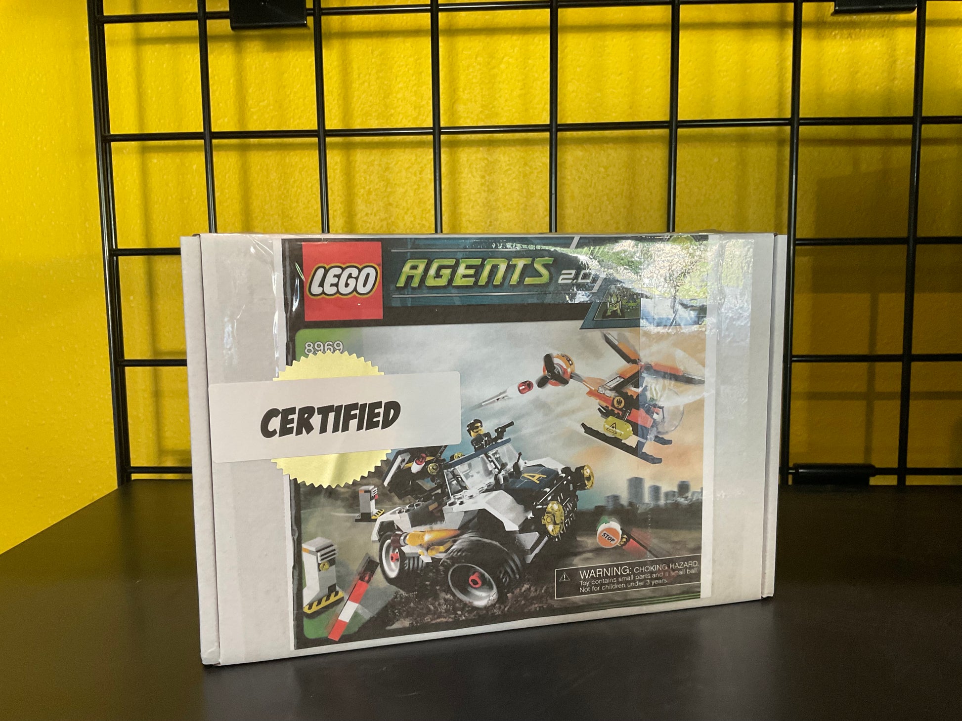 LEGO 8969 4-Wheeling Pursuit was a 320 piece Agents set with 2 minifigs released in 2009. It includes Agent Chase, Dr. D. Zaster, a helicopter, a gate, and the Agents 4-Wheeled Truck.