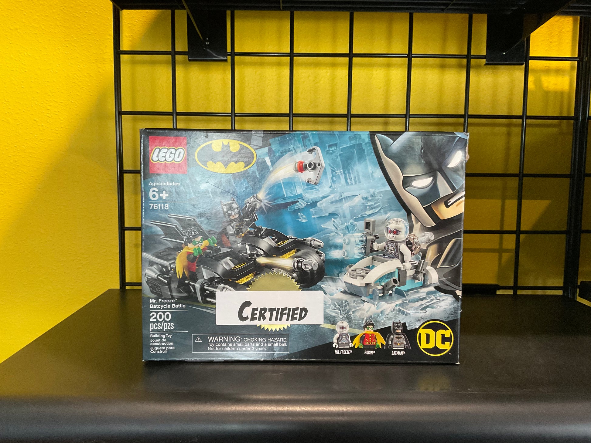 LEGO 76118 Mr. Freeze Batcycle Battle was a 200 piece DC Comics Super Heroes set with 3 minifigs released in 2019.