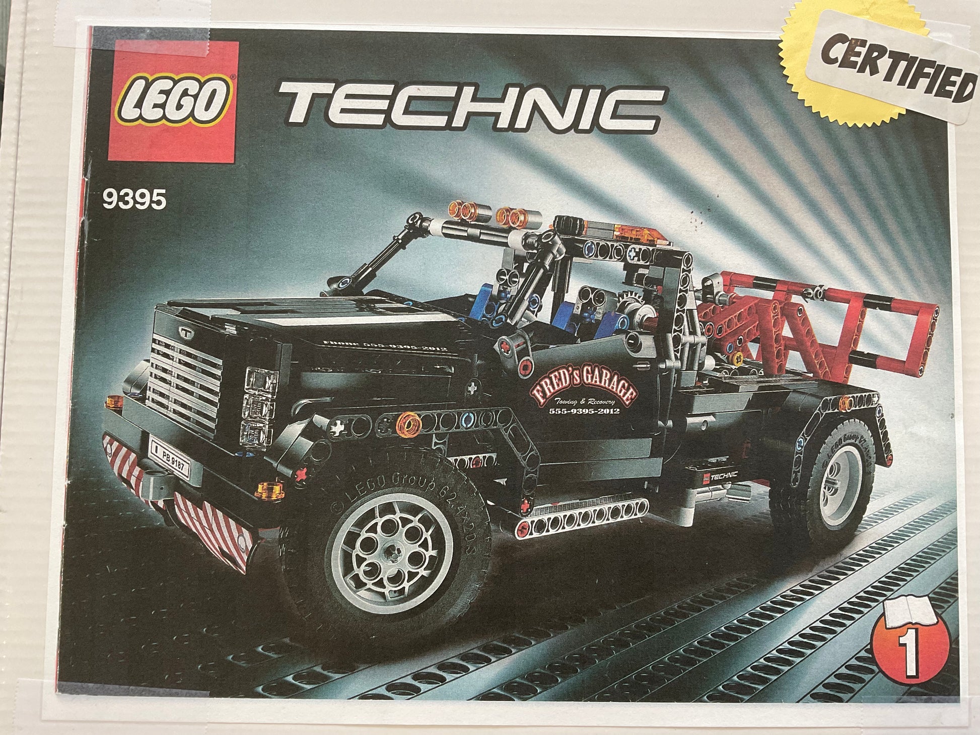 LEGO 9395 Pick-Up Tow Truck was a 954 piece Technic set released in 2012. It includes a black tow truck with working steering, a V-4 engine with pistons and a foldable tow harness and an alternate model that is a truck with a side lift.