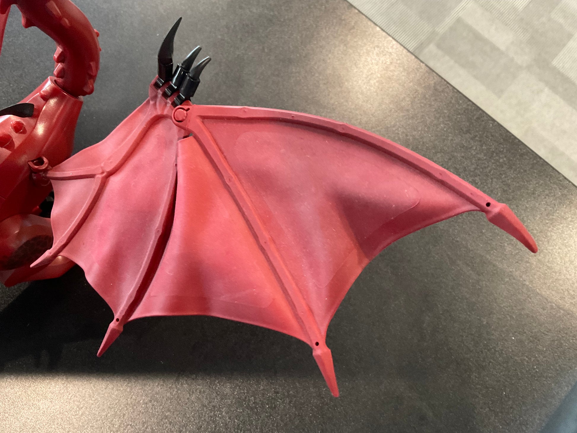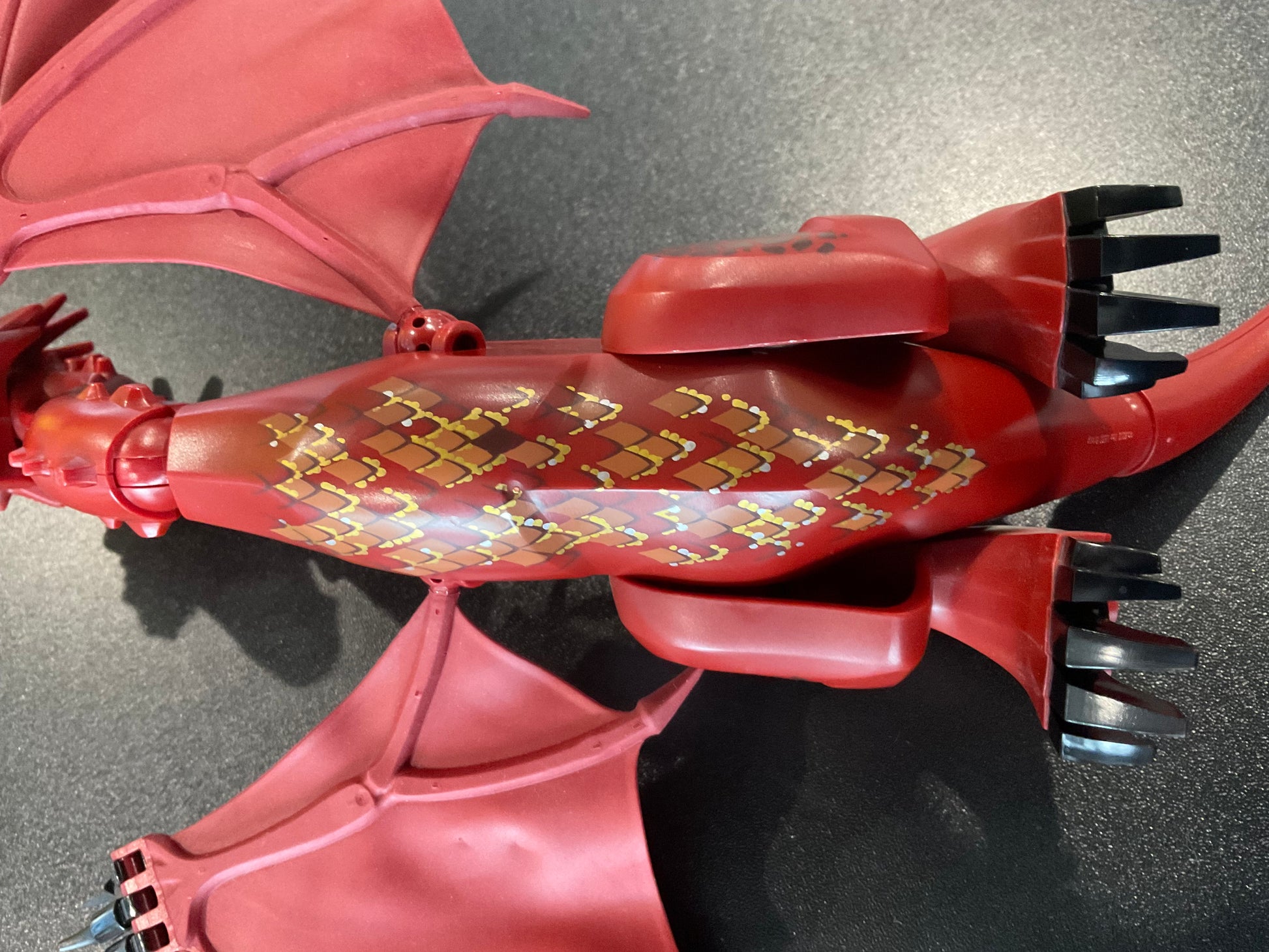 LEGO smaug01 - The LEGO Smaug Dragon is an authentic, fully posable figure from The Hobbit theme, offered here as the dragon only with no minifigures or set pieces included. It features articulated wings, neck, legs, tail, and jaw, along with detailed red-scaled printing. This standalone Smaug is ideal for collectors, custom builders, or those replacing a missing figure. This listing includes only the complete dragon figure.