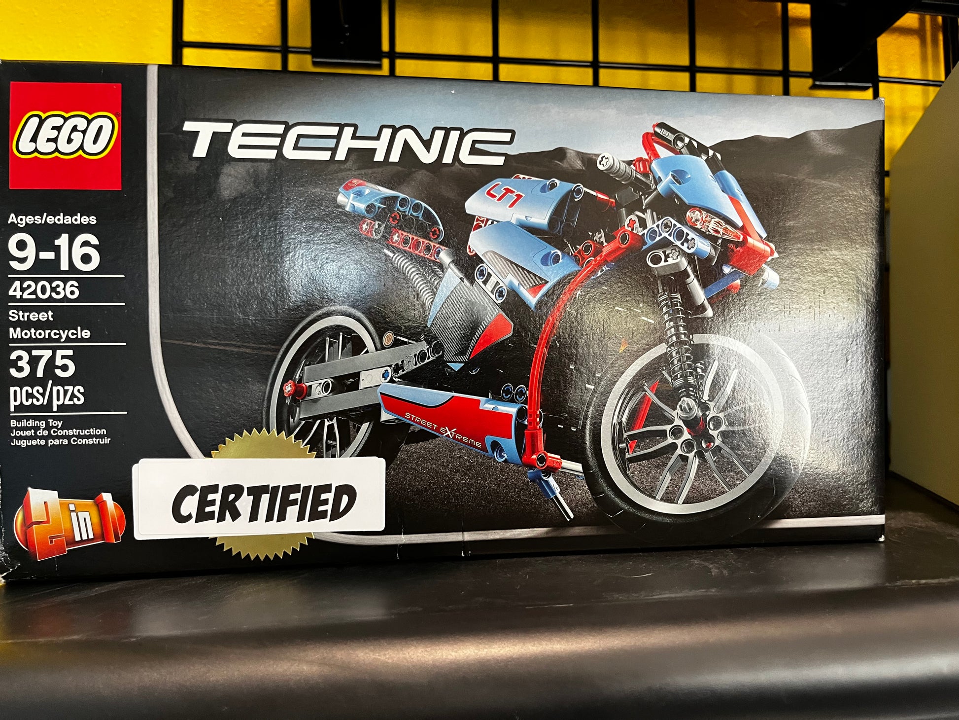 LEGO 42036 Street Motorcycle was a 375 piece Technic set released in 2015. This 2-in-1 model rebuilds into a Retro Bike. It was retired in December 2016 with a lifespan of 16 months.