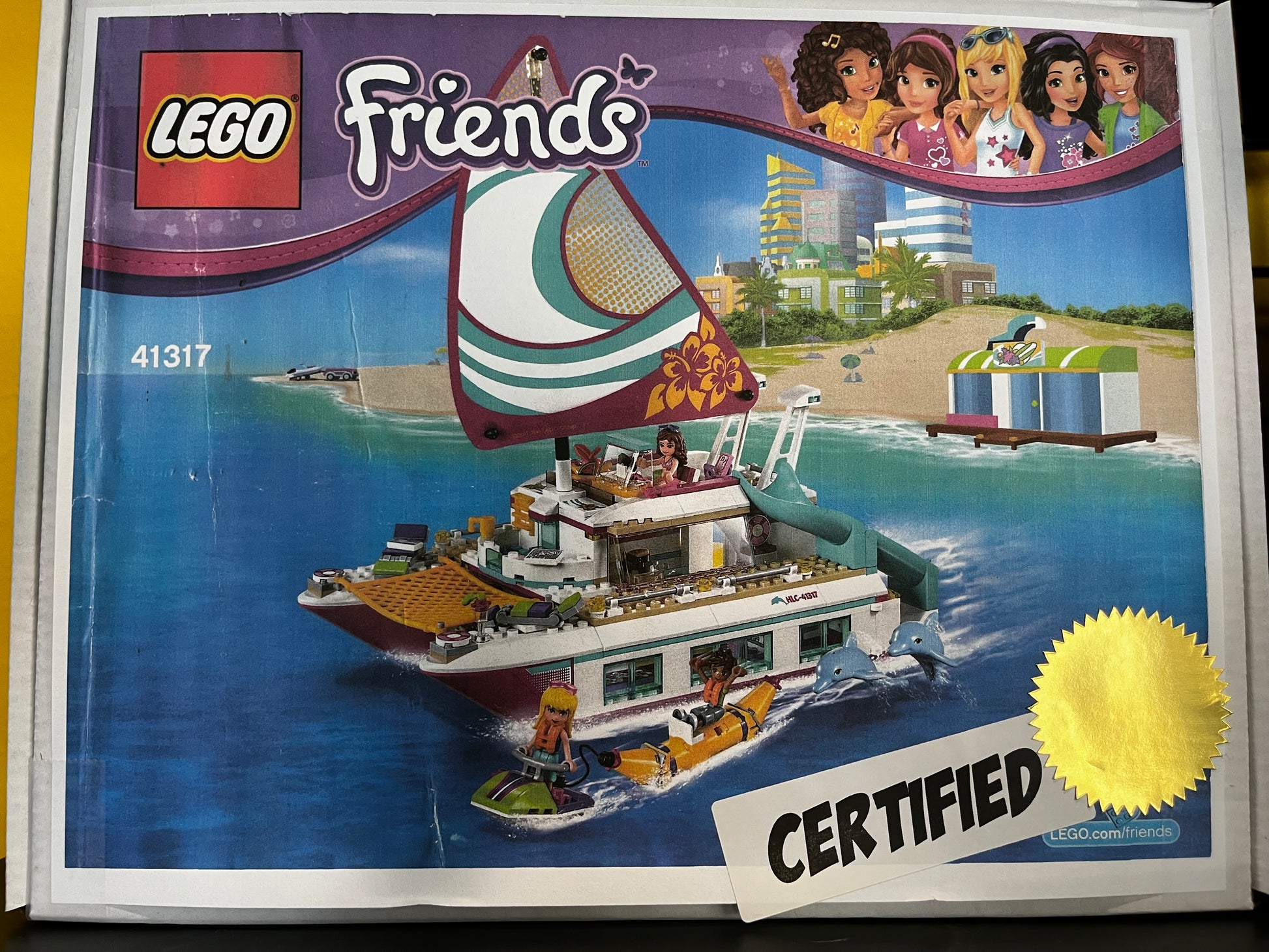LEGO 41317 Sunshine Catamaran was a 603 piece Friends set with 3 mini-doll figures released in 2017. It was retired in November 2018 with a lifespan of 18 months.