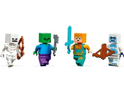 LEGO 21186 The Ice Castle is a 499 piece Minecraft set with 6 minifigs released in 2022. It features a castle with a flick-fire arrow launcher, including minifigures of the Royal Warrior, a yeti, skeletons, and zombies, along with a cauldron, treasure chest, and crafting table. It was retired in January of 2024.