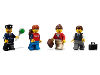 LEGO 7937 Train Station is a 361 piece City set with 6 minifigs released in 2010. It features a railroad station with a sheltered waiting area, kiosk, ticket machine, timetables, four straight tracks, a taxi, and four minifigures. It was retired in December of 2013.