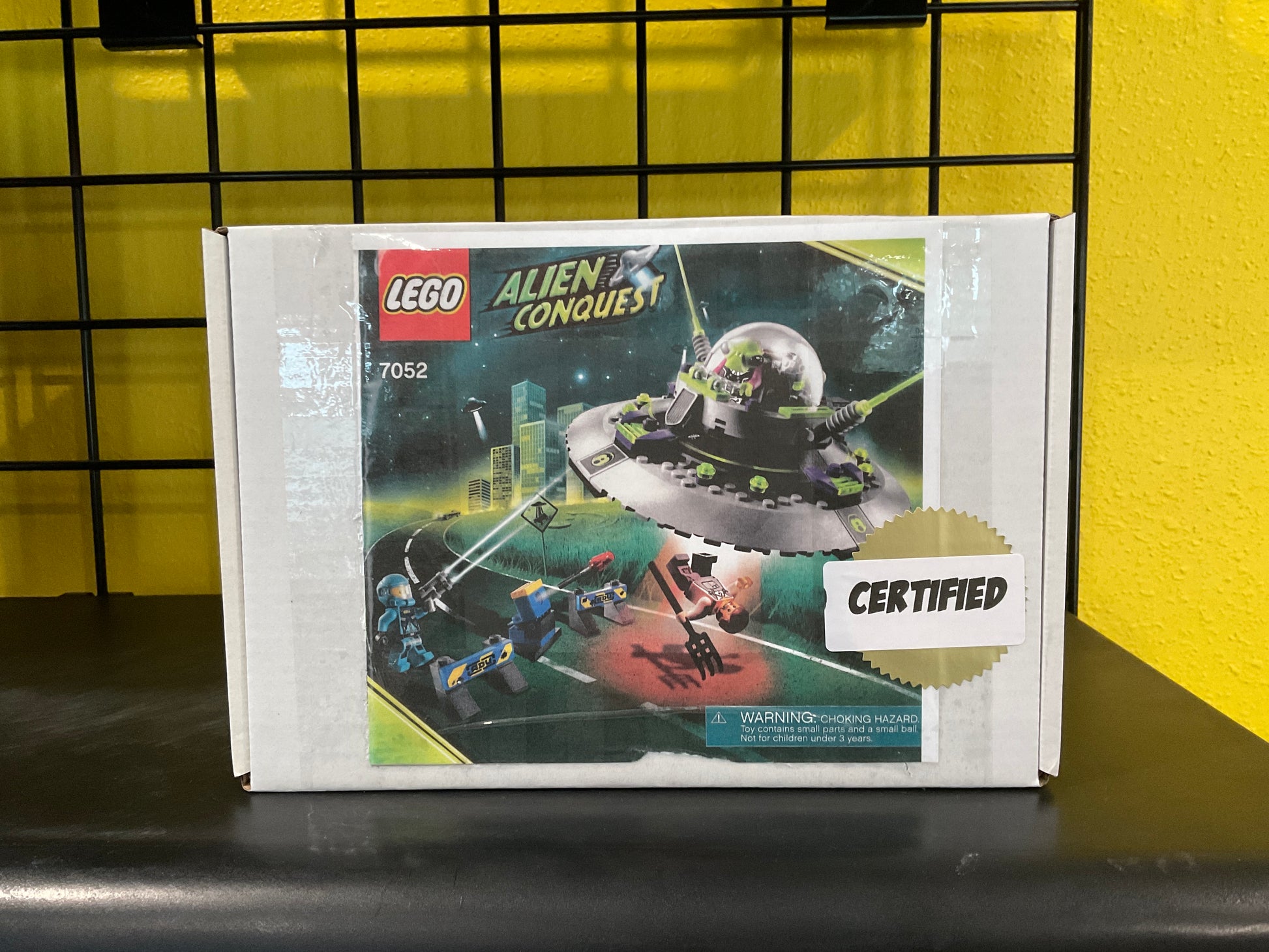 LEGO 7052 UFO Abduction was a 211 piece Space set with 3 minifigs released in 2011. It Includes the ADU Sergeant, an Alien Pilot and a Farmer. It was retired in August 2012 with a lifespan of 15 months.