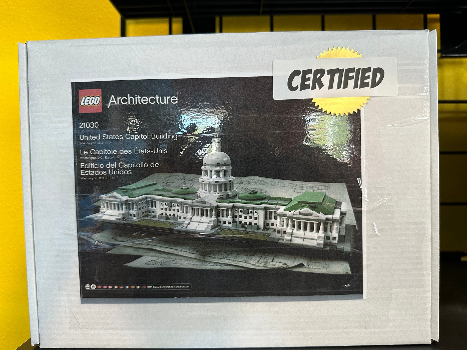 The United States Capitol Building set was announced at the Nuremberg Toy Fair along with LEGO Architecture Buckingham Palace. The set's base is 56 studs wide and 14 studs deep, with the bulk of the model about 6 bricks tall, and the tallest portion is around 17 bricks tall. The final model only reaches 6 inches high including that tall dome and the building is 17 inches long. At the same time, builders should be impressed with the detail and realism that the designers were able to put into the build. One of the interesting elements to this build is the fact that there is also an interior. The tiled floor, columns and eight different statues provide a glimpse into the grandeur and inner workings of the building. This can be viewed by simply lifting off the dome structure.